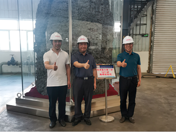 圖為肖志軍在16T/爐海綿鈦鈦坨處留影